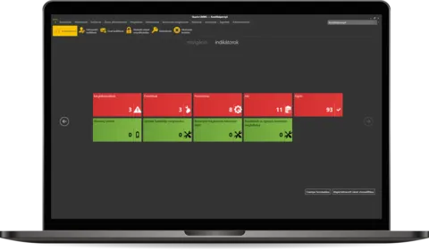 - A legfontosabb karbantartási mutatók (MTTR, MTBF stb.) folyamatos kiszámítása az egész üzemre, a gyártósorokra és az egyes gépekre vonatkozóan.